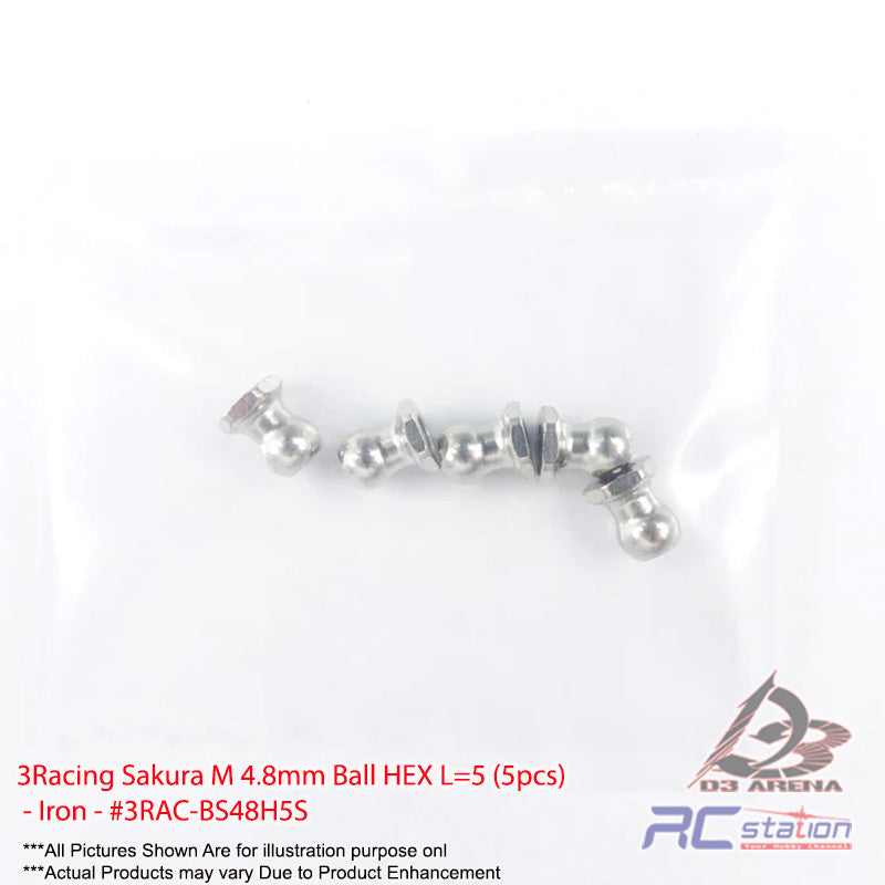 ★3Racing Iron 4.8mm Hex Ball Stud L=5 (5 pcs)