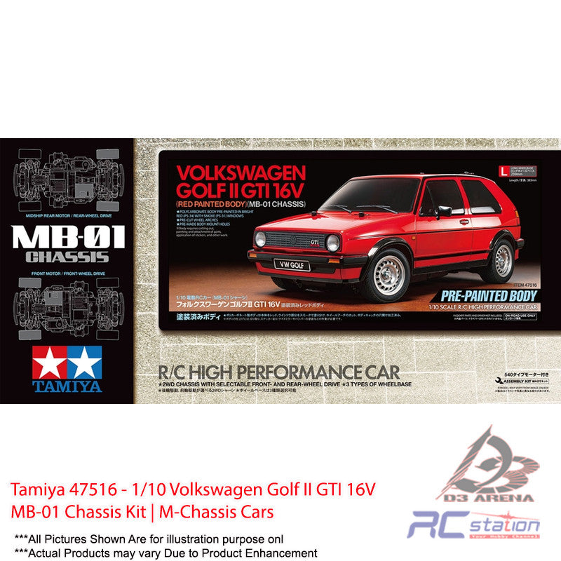 This radio-controlled model assembly kit recreates the Volkswagen Golf II GTI 16valve. The kit is based on the beginner friendly and highly customizable MB-01 chassis, which allows hobbyists to grow as their driving and building skills develop. Like the full-size car it depicts, the chassis configuration on the MB-01 chassis is set up in the front motor, front drive configuration for unparalleled realism.