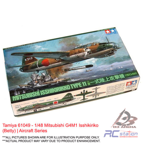 The "Isshiki Rikuj? K?geki ki (Isshikirikk?)", or Type 1 Land-Based Attack Aircraft, was more widely known as the G4M (Allied reporting name "Betty"). It was widely used by the Japanese Navy during WWII, as was particularly notable for contributing to the sinking of the British battleship Prince of Wales and battlecruiser Repulse near the beginning of the war. This kit accurately reproduces the Model 11, or G4M1, variant of this bomber, including its rotund, cigar-shaped fuselage. The flaps, engine cowl flaps, dorsal gun position, and upper part of the front canopy can all be assembled in either open or closed positions. Parts for a Type 91 torpedo, twelve 60kg bombs, and three crew figures, as well as six marking options are also included.