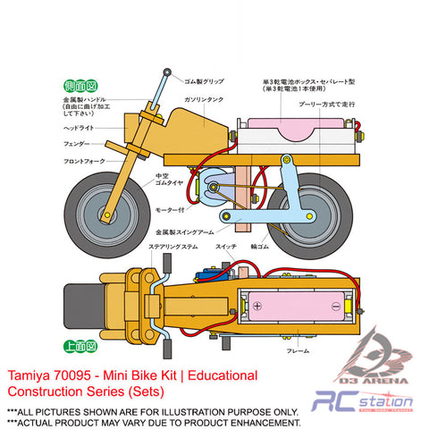 Similar to how the drivetrain mechanism of an actual bike works, this kit features a rubber band which transfers the motor's power to the pully at the rear wheels. The wooden parts for the frame, fuel tank, and fender are all pre-cut and feature pre-drilled screw holes for easy assembly. For even more convenience, the motor is simply snapped onto its mount while the wires only need to be connected for completion. The wide semi-pneumatic synthetic rubber slick tires ensure stable running.