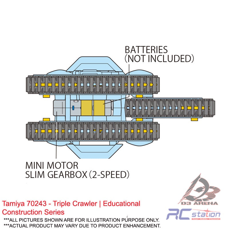 ★This assembly kit creates a model that not only easily gets over obstacles and steps with three moving crawlers, but also is capable of reverse and running on its side.