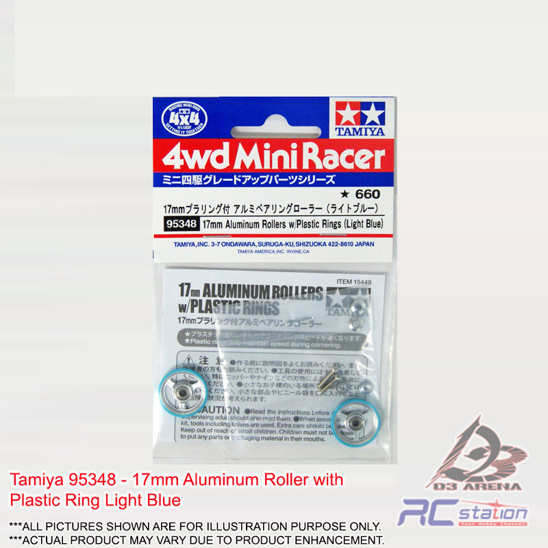 These rollers are used on Mini 4WD racing cars. They feature a low-friction plastic on the outer ring to help maintain your Mini 4WD cars speed during cornering. The pre-installed ball bearings on the 3-spoke roller ensure smooth rotation at high or low speed.