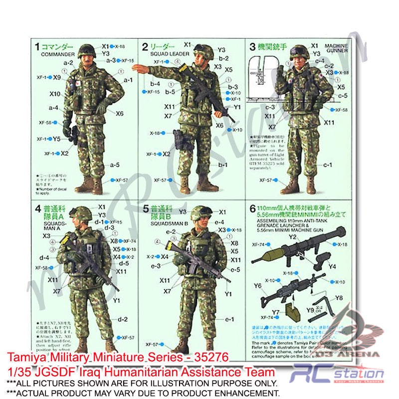 Tamiya introduces a set of 1/35 scale JGSDF figures. Set includes five figures: a commander holding binoculars, a squad-leader pointing, two squadsmen on patrol holding 5.56mm automatic rifles, and a squadsman designed to be placed in the JGSDF Light Armored Vehicle. This figure set is perfect for adding that finishing touch to your light armored vehicle or for creating realistic diorama.