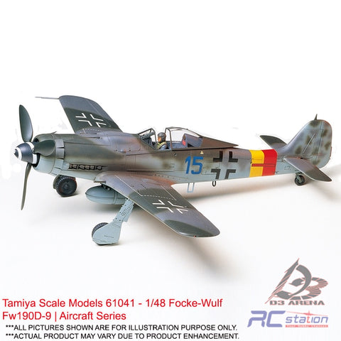 Among the many variants of the Focke-Wulf Fw 190 that were produced during WWII, the D-9 is one of the most recognized. It entered service in September 1944 and was notable for its switch from the previous radial engine to a liquid-cooled V-12 engine for even higher performance. This kit accurately depicts the D-9's features, including its lengthened nose and rear fuselage, and includes parts to depict either open or closed cowl flaps and canopies. One pilot figure and four marking options are also included.