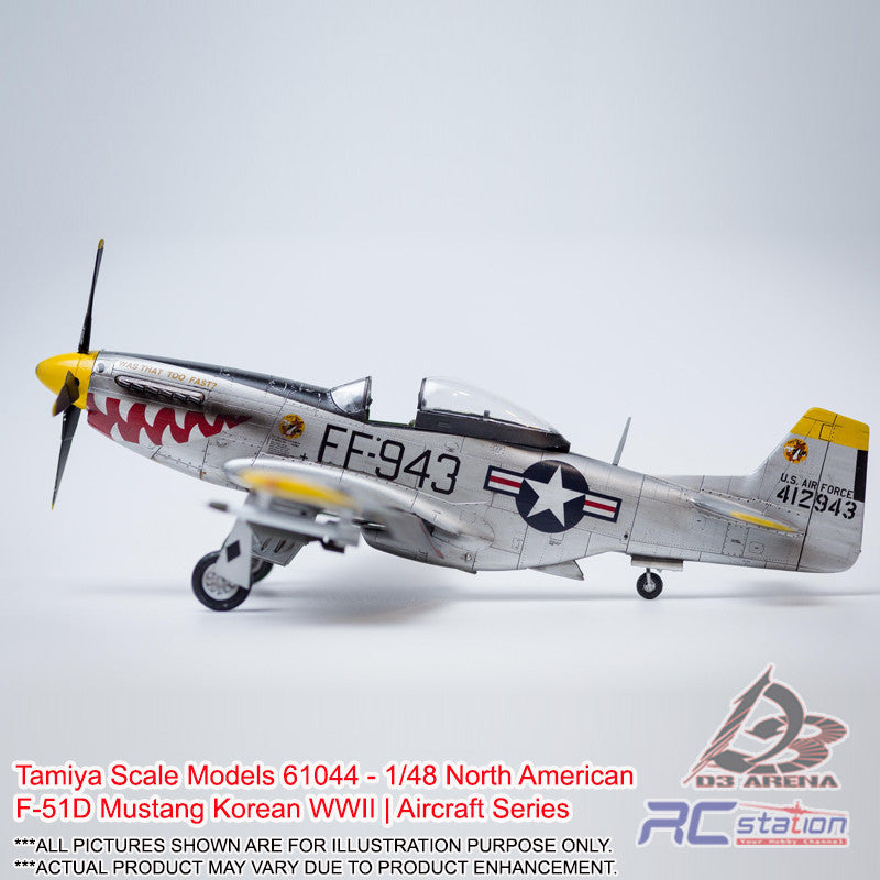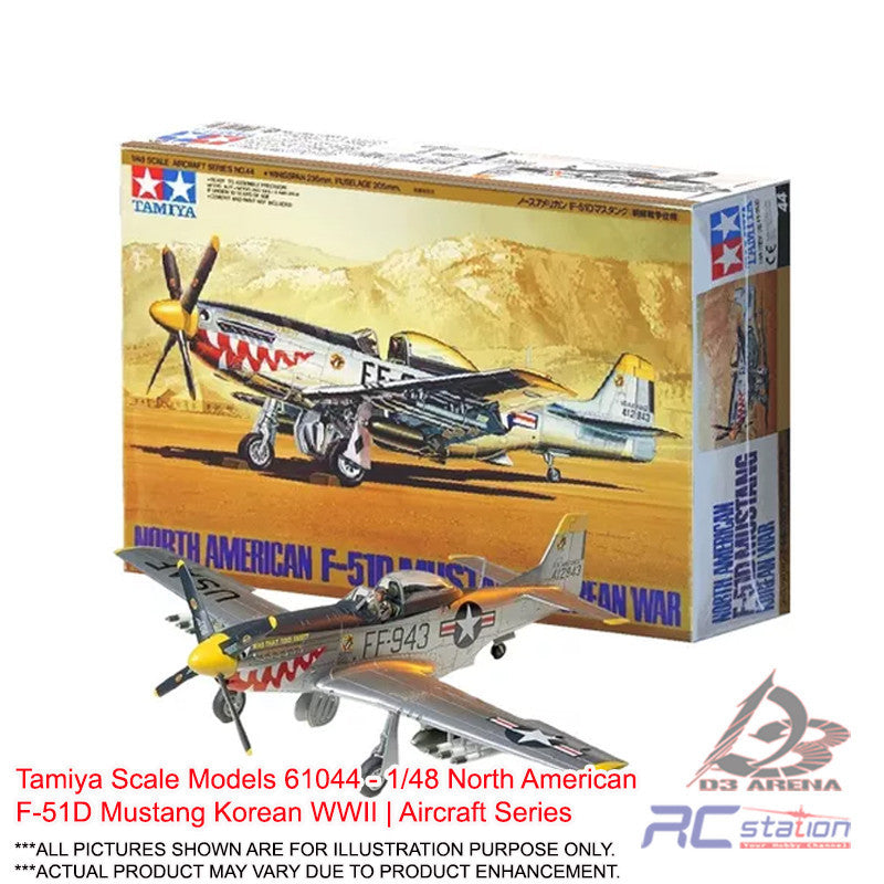 With its excellent balance of high-speed, range, and maneuverability, the P-51D Mustang was considered by many to be the best piston - engine fighter of WWII. After the war, the U.S. Air Force became an independent entity and the P-51D's designation likewise changed to F-51D. The aircraft was still in service when the Korean War broke out and this kit depicts aircraft which saw action during this conflict. The form of the Mustang has of course been accurate reproduced and a wide range of ordnance, including two 500lb bombs, six HVAR rockets, and two 75-gallon drop tanks used as napalm canisters, has been added for extra value. One pilot figure and three marking options are also included.
