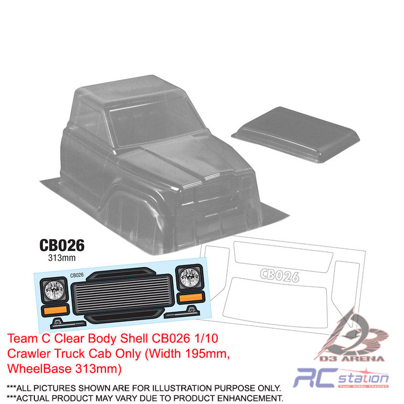 Team C Clear Body Shell CB026 1/10 Crawler Truck Cab Only (Width 195mm, WheelBase 313mm)