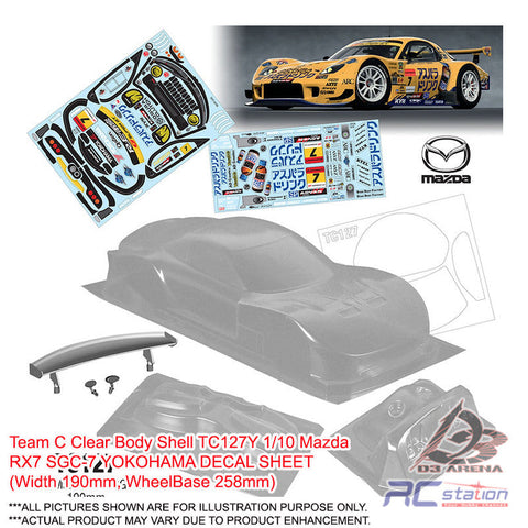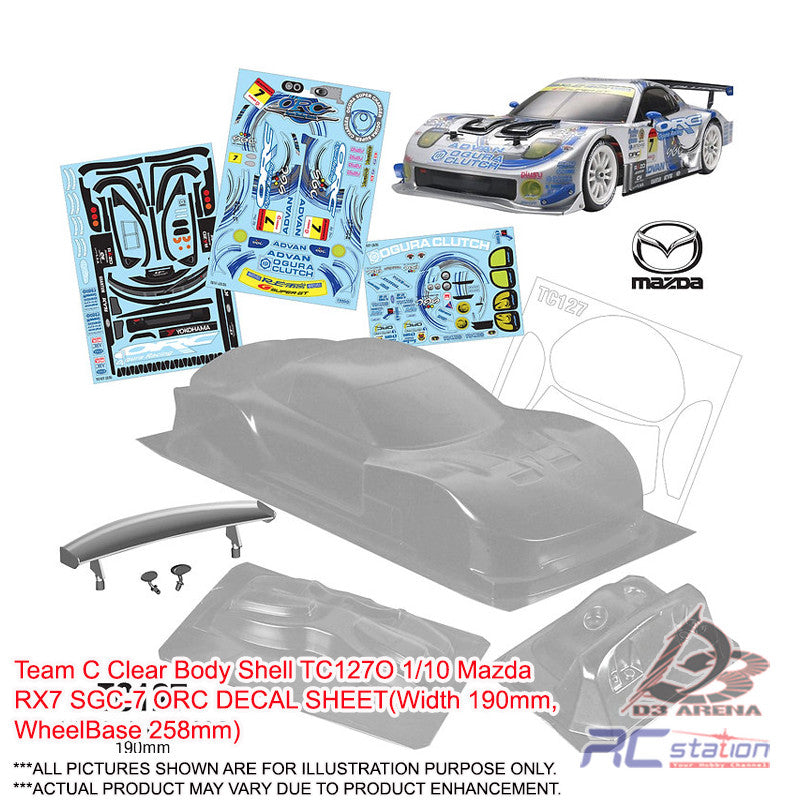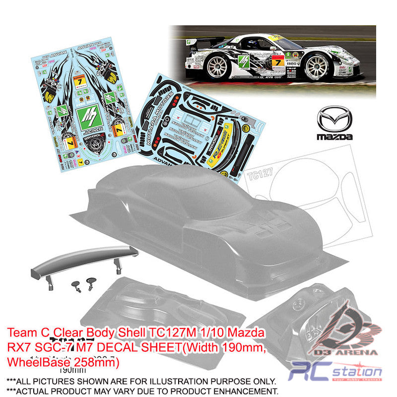 Team C Clear Body Shell TC127 1/10 Mazda RX7 SGC-7 (Width 190mm, WheelBase 258mm)
