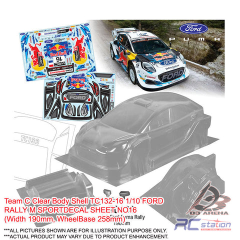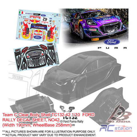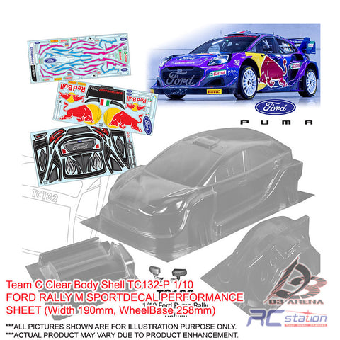 Team C Clear Body Shell TC132 1/10 Ford Puma Rally (Width 190mm, WheelBase 258mm)