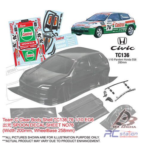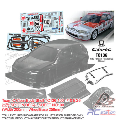 Team C Clear Body Shell TC136 1/10 Pandem Honda EG6 (Width 200mm, WheelBase 258mm)