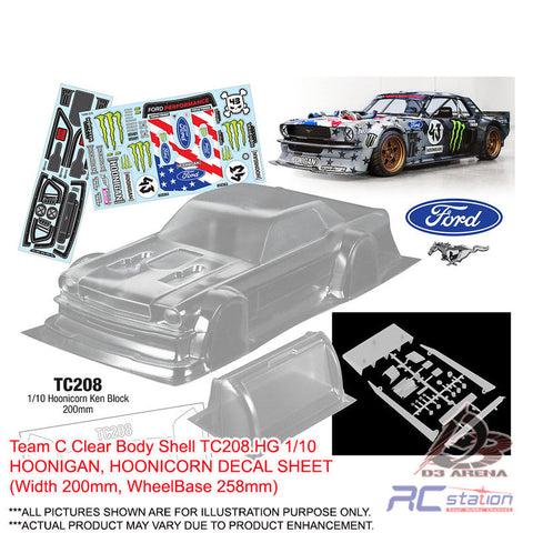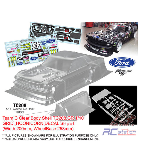 Team C Clear Body Shell TC208 1/10 Hoonicorn Ken Block (Width 200mm, WheelBase 258mm)