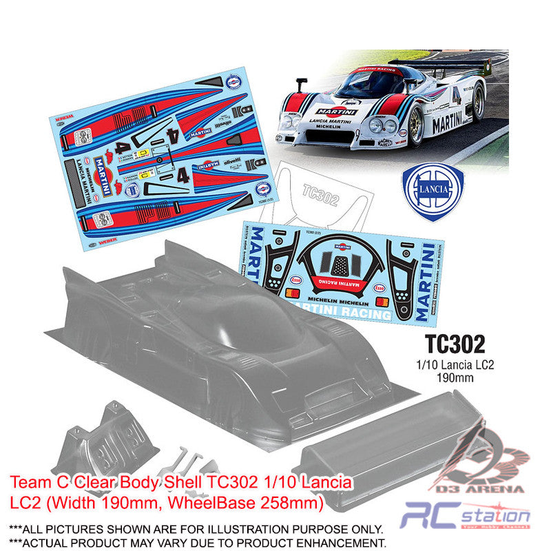Team C Clear Body Shell TC302 1/10 Lancia LC2 (Width 190mm, WheelBase 258mm)