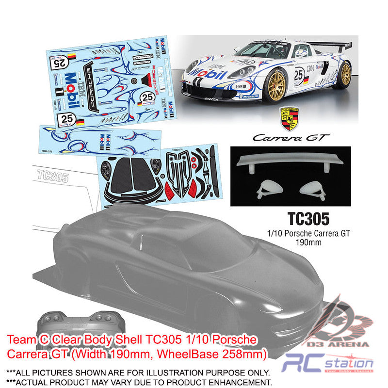 Team C Clear Body Shell TC305 1/10 Porsche Carrera GT (Width 190mm, WheelBase 258mm)