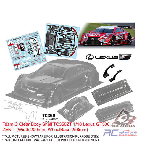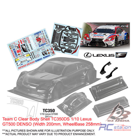 Team C Clear Body Shell TC350 1/10 Lexus GT500 (Width 200mm, WheelBase 258mm)