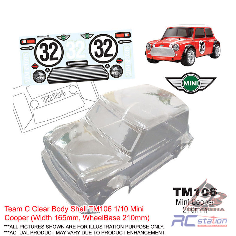 Team C Clear Body Shell TM106 1/10 Mini Cooper (Width 165mm, WheelBase 210mm)