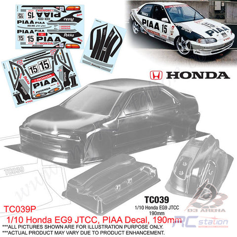 Team C Racing Clear Body Shell TC039 1/10 Honda EG9 JTCC (Width 190mm, WheelBase 258mm)