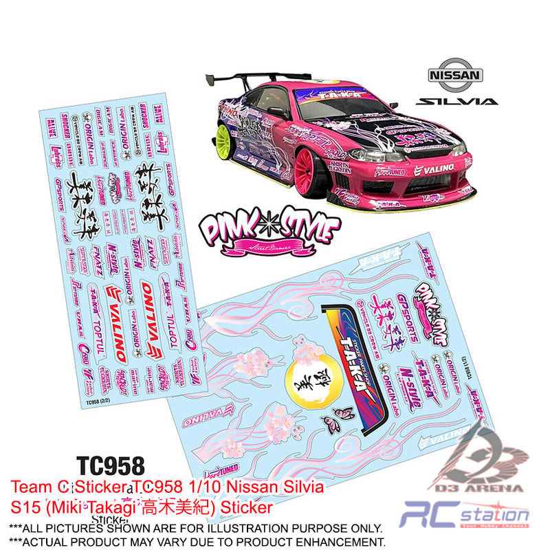 Team C Sticker TC958 1/10 Nissan Silvia S15 (Miki Takagi 高木美紀) Sticker