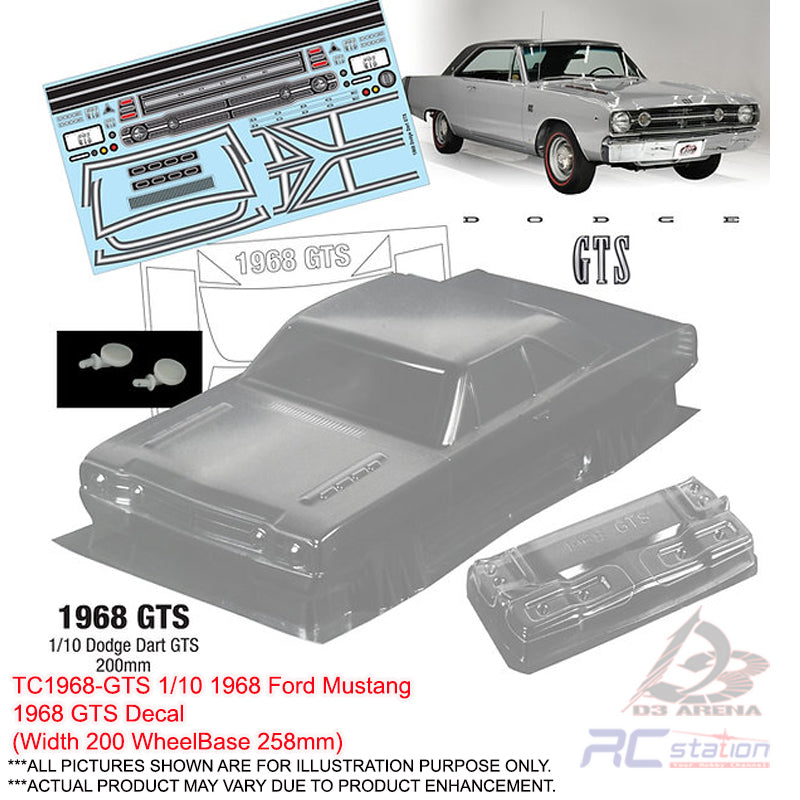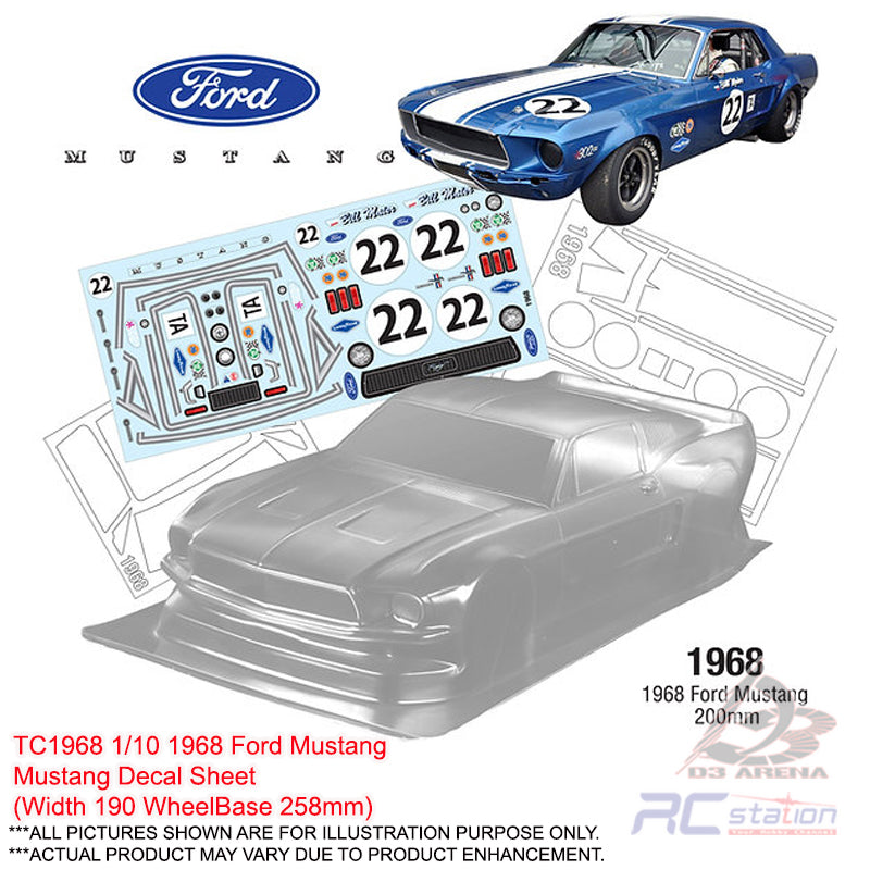 TeamC Racing Clear Body Shell 1/10 1968 Ford Mustang (Width 190mm, WheelBase 258mm) - 1/10 1968 Ford Mustang - WheelBase 258mm - Width 190mm - Clear Lexan Body